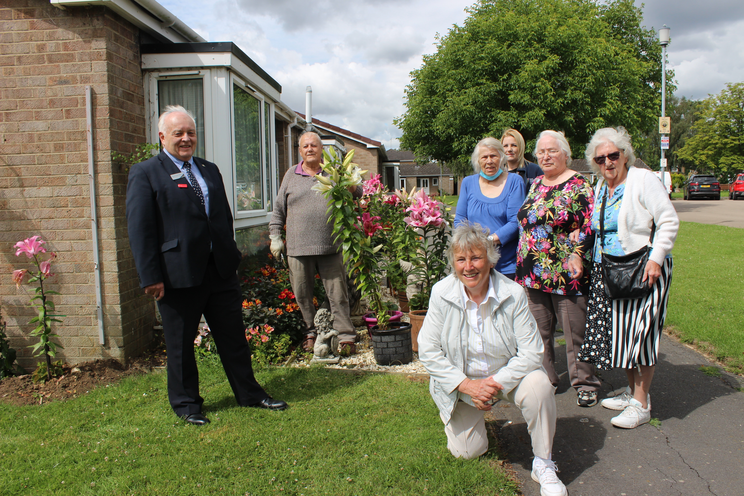Cllr Barry Dobson with residents Ray Maidens, Jennifer Brooks, Rosemary Nightingale, Gillian Tresidder, Jill Bellamy and SKDC sheltered housing officer Katie Askew (rear).JPG